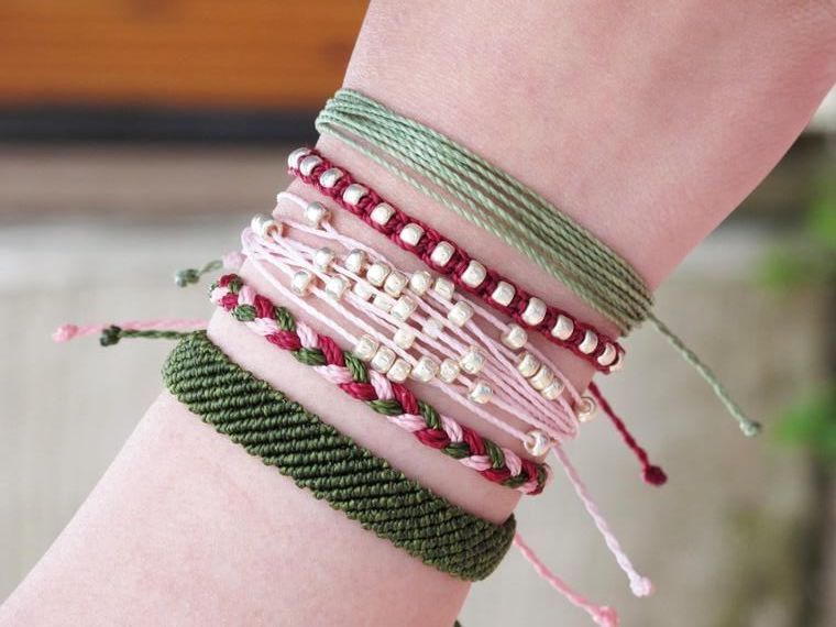 Я, как думаю и большинство людей, научилась плести фенечки в пионерском лагере. Плела их подружкам и понравившимся мальчикам, сидя на террасе деревянного домика, а над нами качались сосны. Потом как-то повзрослела и забросила, вспомнив о них только на первом курсе перед отъездом на практику. И снова был деревянный домик, лес и первая серьёзная влюблённость. На этот раз я подошла к фенечкам с другой стороны и превратила их в наш личный мерч, наделав с десяток парных фенечек с важными для нас названиями городов, музыкальных групп и героями фильмов.